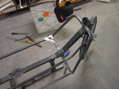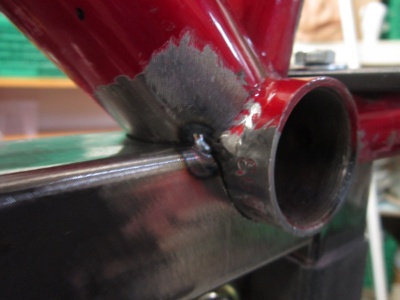 Das Unterrohr wird mit einem Bandstahl vertärkt.